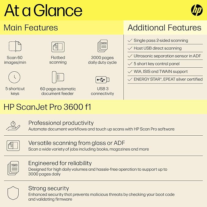 HP ScanJet Pro 3600 f1, Fast 2-Sided scanning and auto Document Feeder (20G06A)