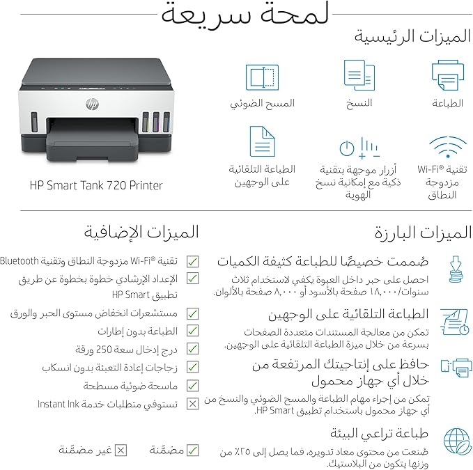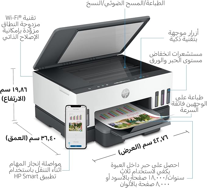 HP Smart Tank 720 All-in-One Printer wireless, Print, Scan, Copy, Auto Duplex Printing, Upto 3 years of printing already included, White/Grey – 6UU46A